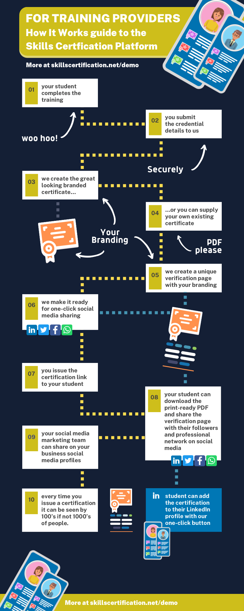 if your training company has a Linkedin Company Page, we can set your training company as the certificate issuer on Linkedin, giving your business even more marketing exposure.